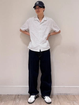 上は明るいシャツで春夏に会うようなコーデにしました!