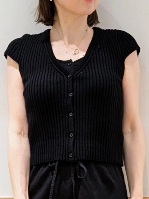 新作のリブカーデとクロップドタンクトップは好バランス◎