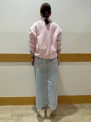 春らしい桜色なピンクがかわいい♡デニムスカートに合わせて爽やか春コーデ