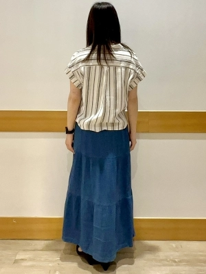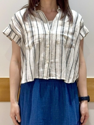 リネン混のクロップドシャツは、スカートとの相性抜群です。