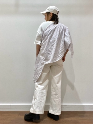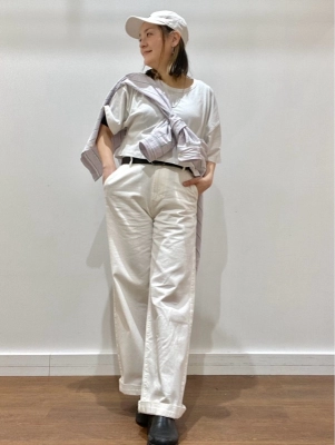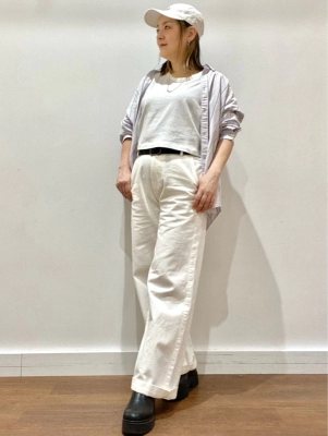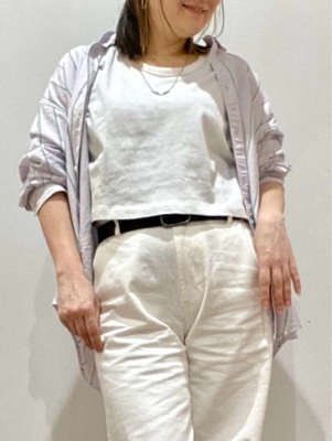 また合わせているクロップド丈のTシャツは、股上深めのボトムと合わせるとお腹が出ないくらいの丈感なので、脚を長く見せることもできて、トップスをインしなくてもいいのでトップスとのツッパリ感もなく着れるので、オススメですっ☆