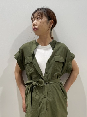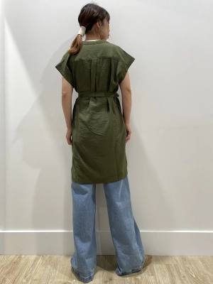 付属の紐ベルトでウエストマークをつくって、メリハリのあるシルエットに。