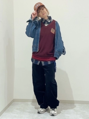 コーデのポイントは、人気のフランネルシャツにベストを合わせたきちんと感のある大人のアメカジスタイルにしてみました!
