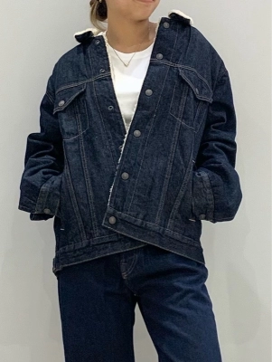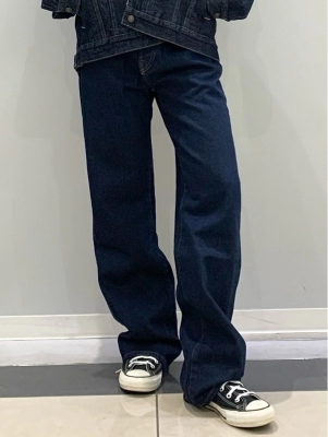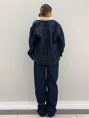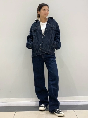 ジャケットに合わせて、ボトムのデニムもダークカラーをチョイス。