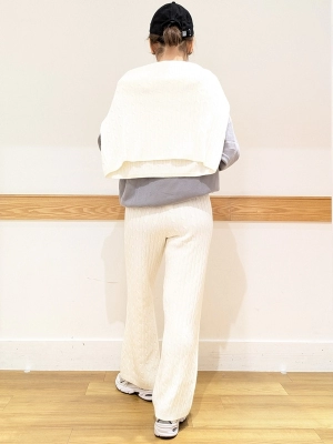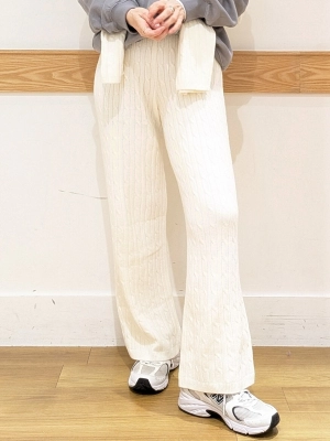 パンツはケーブル編みで透け感も少なく、ベーシックなインナーでOK。ゆとりがあるのでジャストサイズを着用。