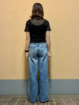 透け感のあるトップスと、ボリュームのあるスーパーバギーで、大人のかっこいいコーディネートにしてみました!!