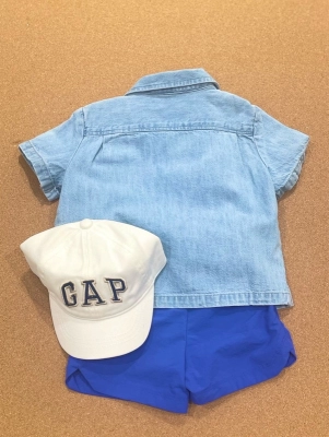クイックドライショートパンツとデニムシャツで