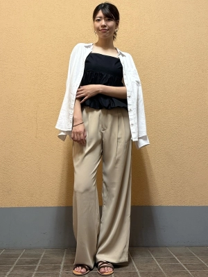 ゆったりめのトラウザーと合わせて、オトナシックなコーディネートに。