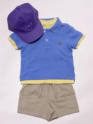 カラー×カラーのポロシャツ、Tシャツのレイヤードコーデです♪