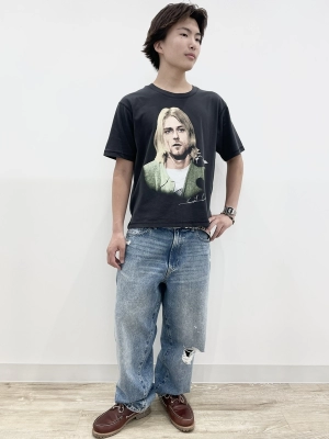 大人気のミュージックティーシャツにゆったりめシルエットのバギーデニムで合わせました♪