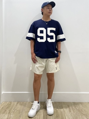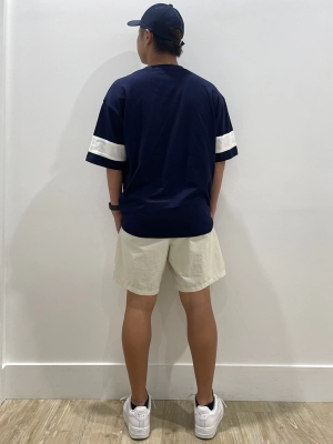 ボトムスはセットアップ着用もできるナイロン素材のショートパンツ!薄くて軽いのでこの夏とっても涼しく着られるおすすめアイテムです