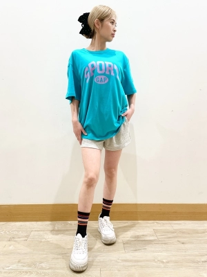 色鮮やかなビビットカラーのGAPロゴTシャツと、