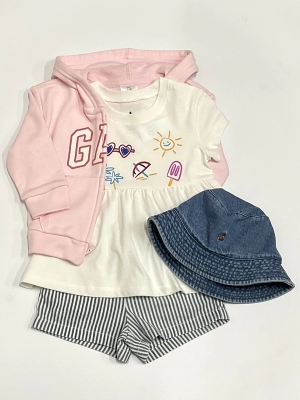 夏のおでかけにぴったりのチュニックとショートパンツのセットです。