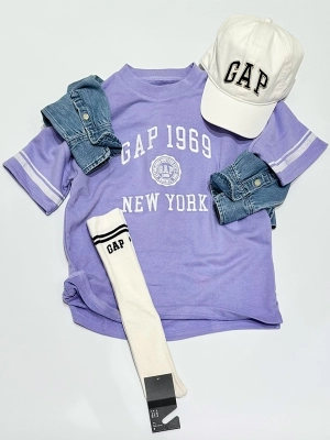 シャツを巻いてウエストマークしたりキャップやニーハイソックスなど小物使いで変化を楽しんで♪