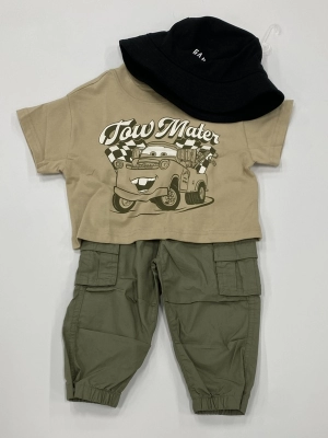 キャンプなどで活躍するカーゴジョガーパンツとハットを合わせた夏コーデはいかがですか。