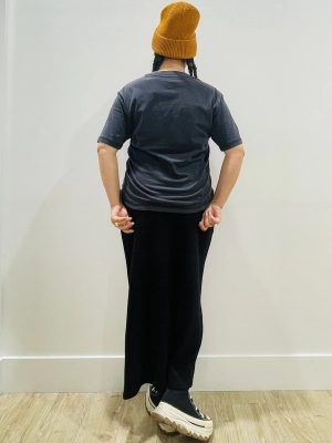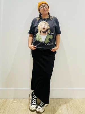 人気のミュージックTに着回し力抜群のスウェットスカートを合わせました。