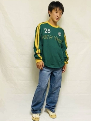 キッズnew 長袖Tシャツにバギーのデニムと合わせました。