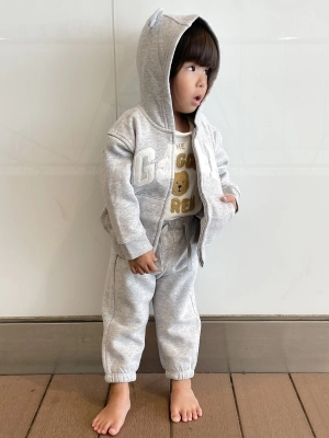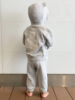 くまみみフードはボディースーツ一枚できた時の羽織物にしてもとってもかわいいですし、まだ持っていない方は、90cmまでの作りになるのでトドラーサイズになる前に着せておきたいデザインです!!