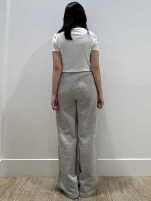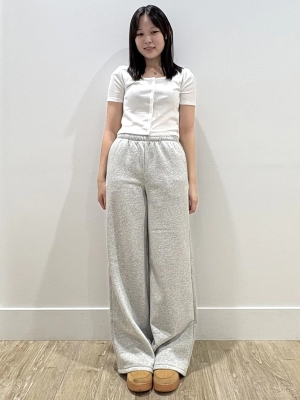 トレンド感ある太さがしっかりあるバギーワイドスウェットパンツにクロップド丈のトップスを合わせたシンプルなスタイリング♪