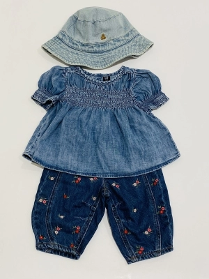 ベビーの柔らか素材のデニムチュニックコーデになります。