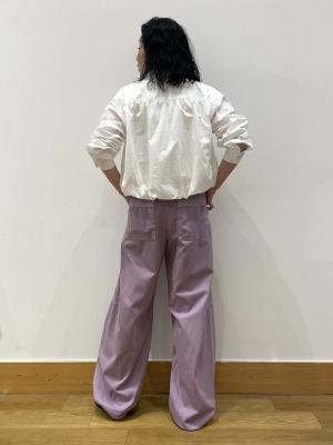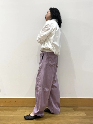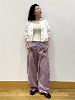 パラシュートパンツを大人っぽく綺麗めに。