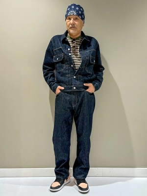 デニムオンデニムを今風に落としこんだイケオジコーデ。